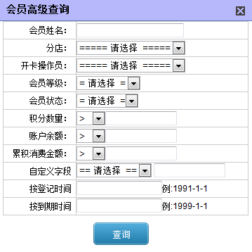 2、点击“高级搜索”按钮,实现对会员的高级搜索和筛选,如下图: