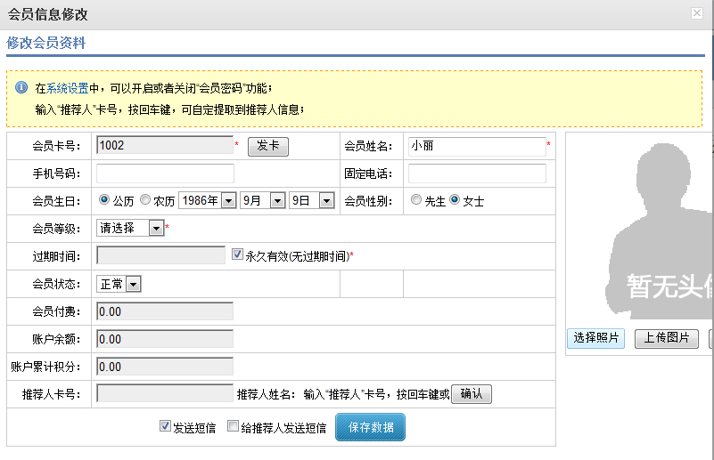 4、点击“修改会员信息”,可以对会员相关信息进行编辑,如下图: