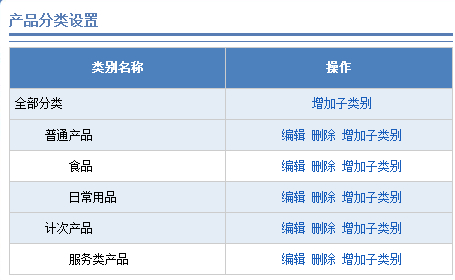 点击“产品管理”主菜单,然后选择“产品分类设置”子菜单,即可调出产品分类设置窗口,如下图: