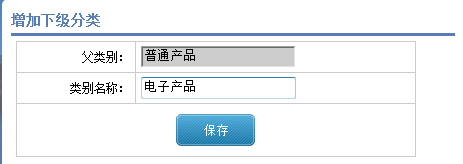 1、点击列表中的 “添加子类别”,页面跳转至添加下级产品分类页面,如下图: